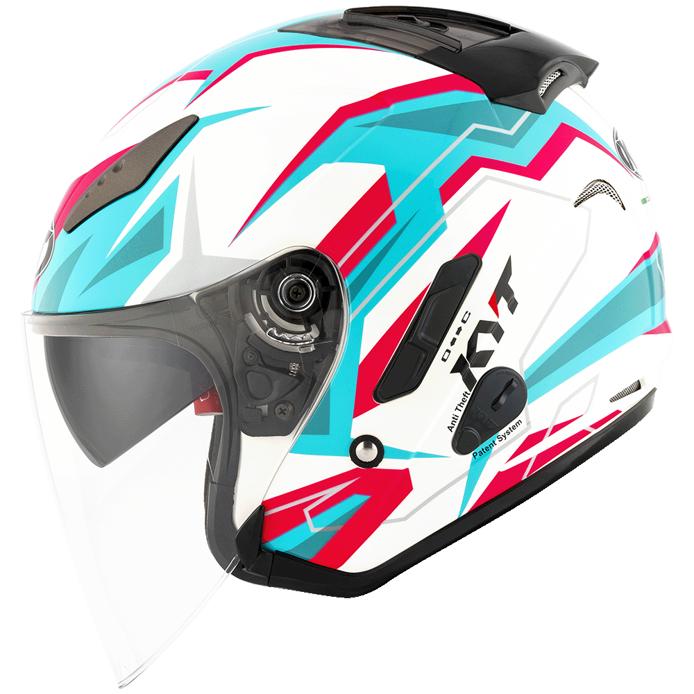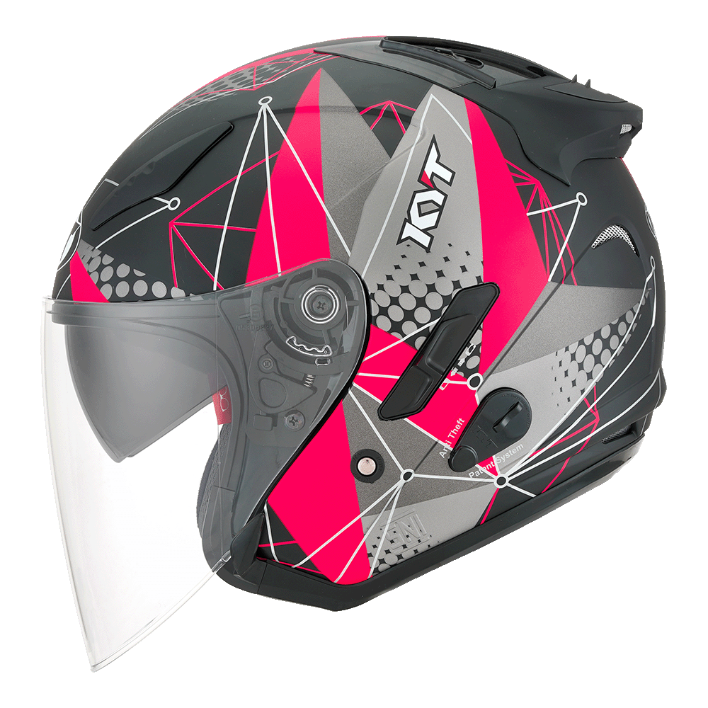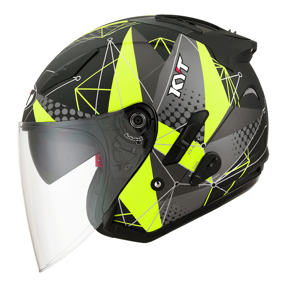 Galaxy Flat R, the new KYT City helmet in Thermoplastic with ADT resin injection technology. Provided with an excellent aeration system, sun visor, and a wide Flat Visor well protecting from air. With a new padding cheekpad fully injected and integrated with wearable glasses, Galaxy Flat R is an intelligent helmet since it is equipped with an innovative anti-theft system, solving the problem of the helmet placing, even for bikes without under seat storage