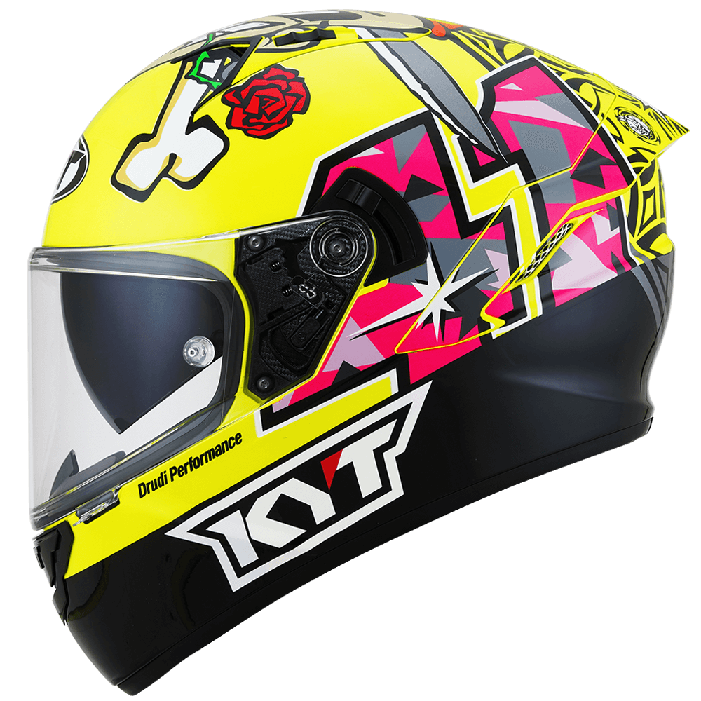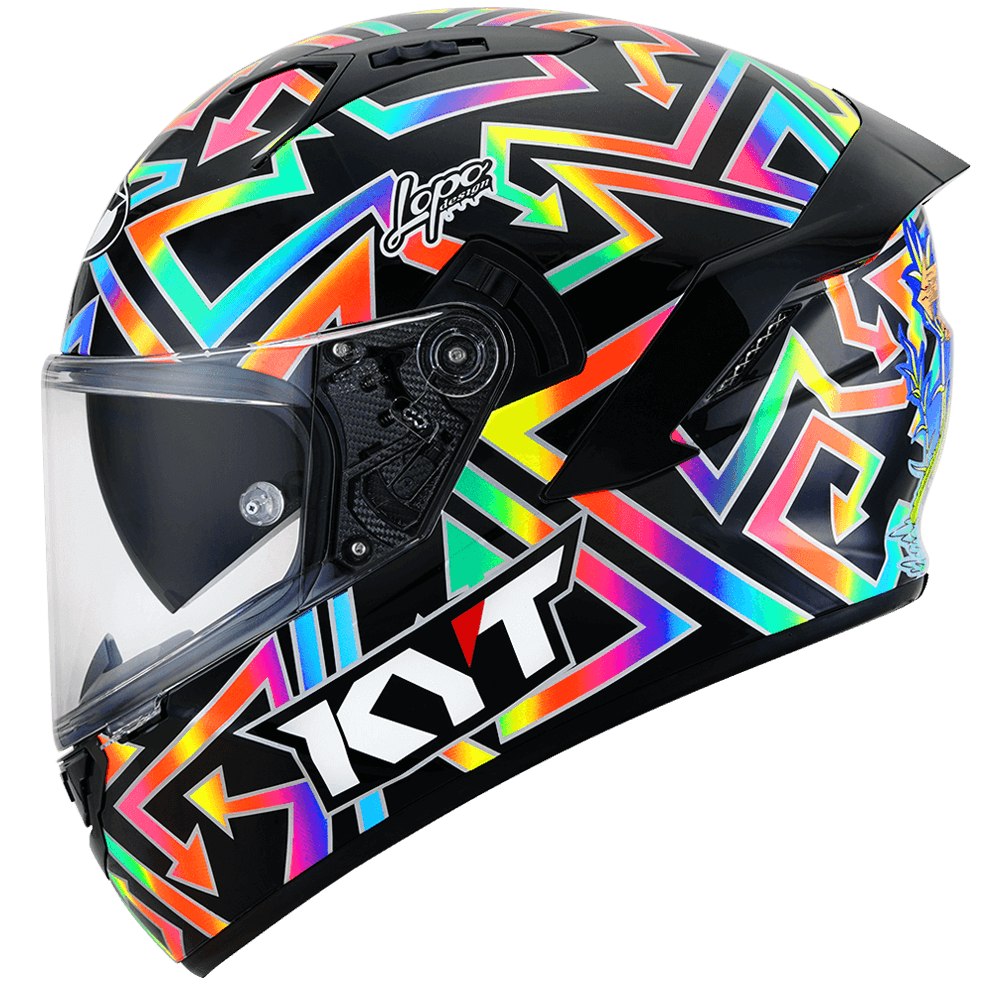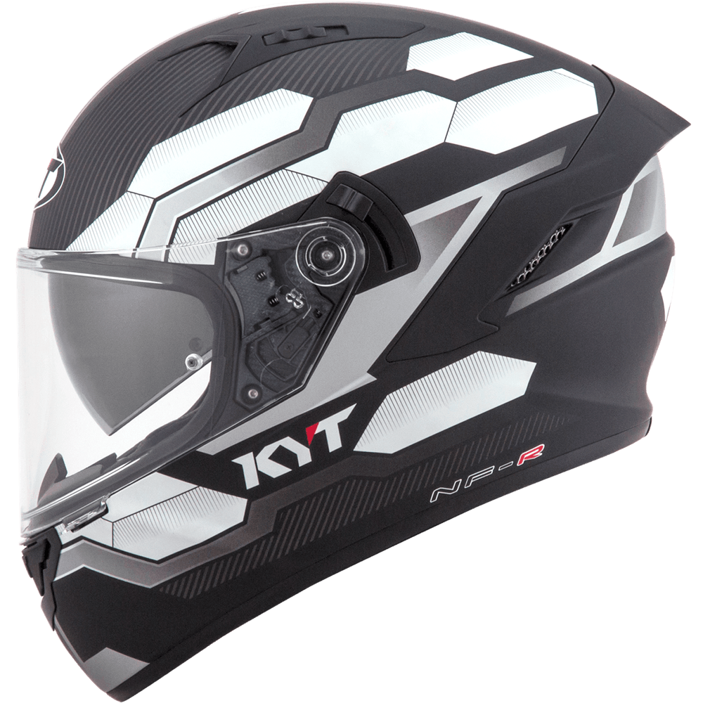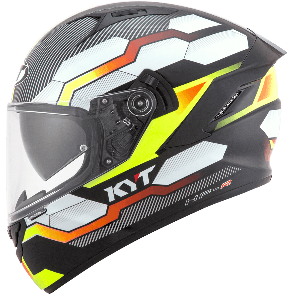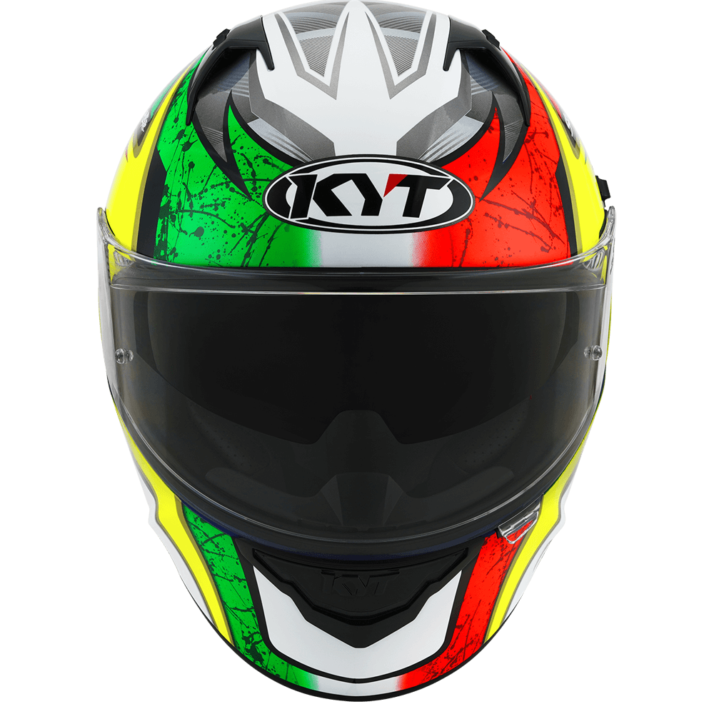 The full face helmet, spearhead of KYT for Sport Touring sector. Effective ventilation, aerodynamic spoiler and restrained weights match with a comfortable and natural fit, a D-Ring retention system and double Advance shell. Equipped with Optical Class 1 visor combined with Pinlock Max Vision and Sun Visor