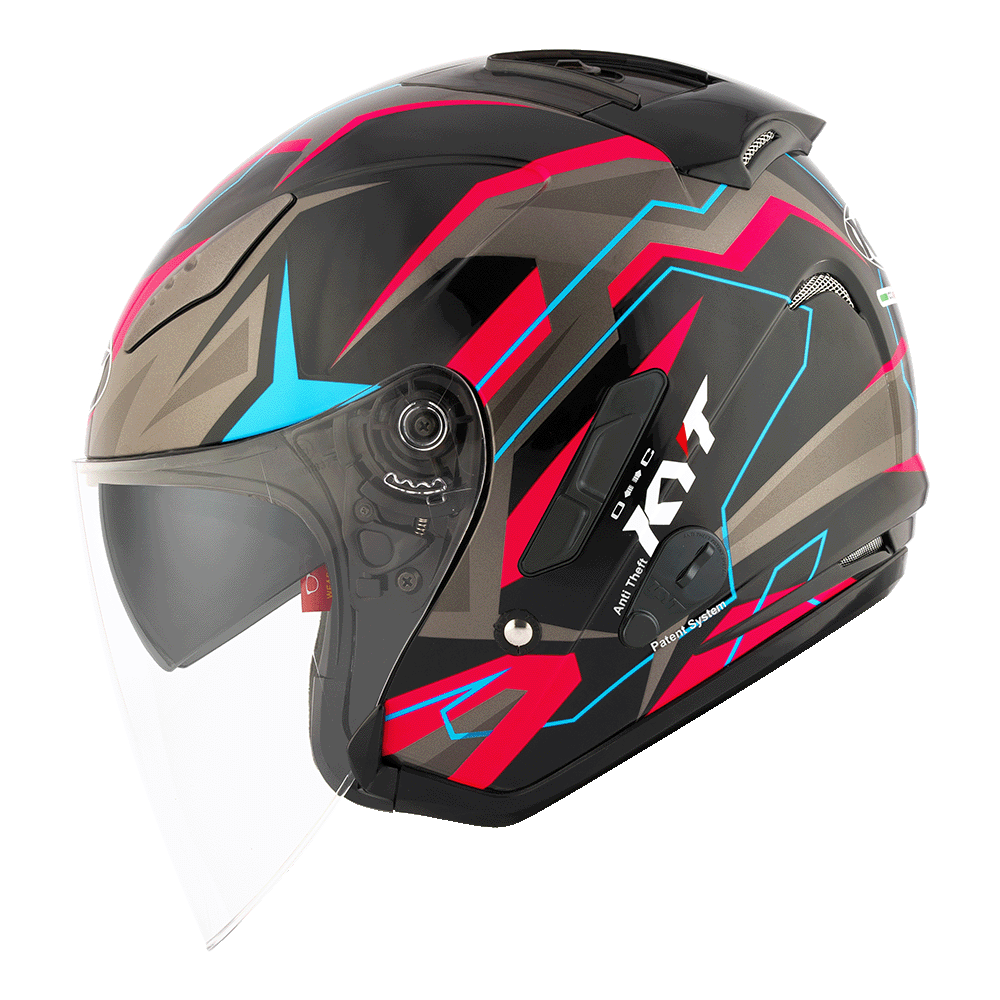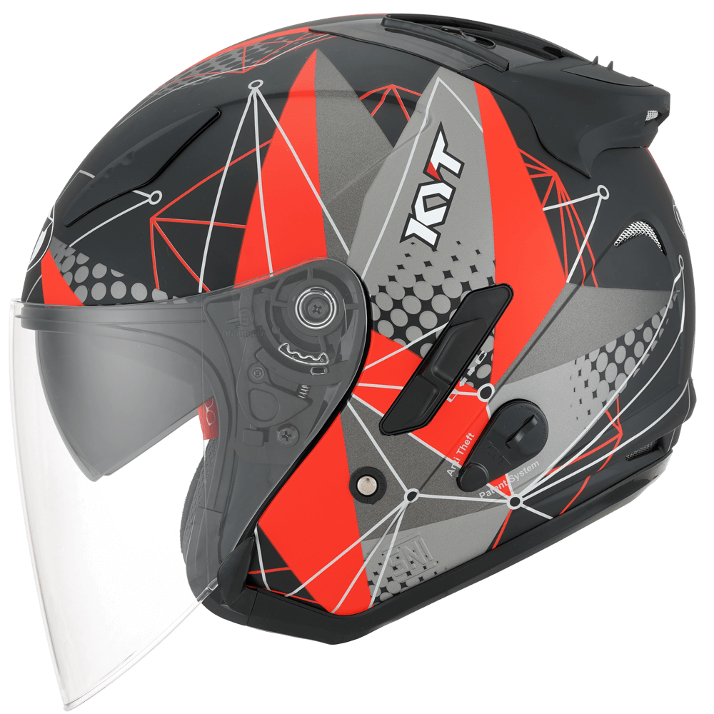 Galaxy Flat R, the new KYT City helmet in Thermoplastic with ADT resin injection technology. Provided with an excellent aeration system, sun visor, and a wide Flat Visor well protecting from air. With a new padding cheekpad fully injected and integrated with wearable glasses, Galaxy Flat R is an intelligent helmet since it is equipped with an innovative anti-theft system, solving the problem of the helmet placing, even for bikes without under seat storage
