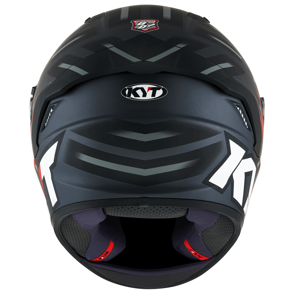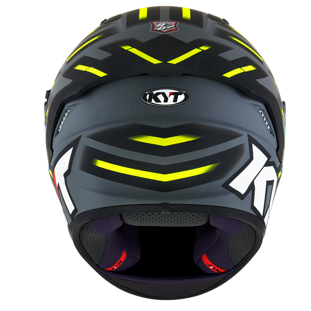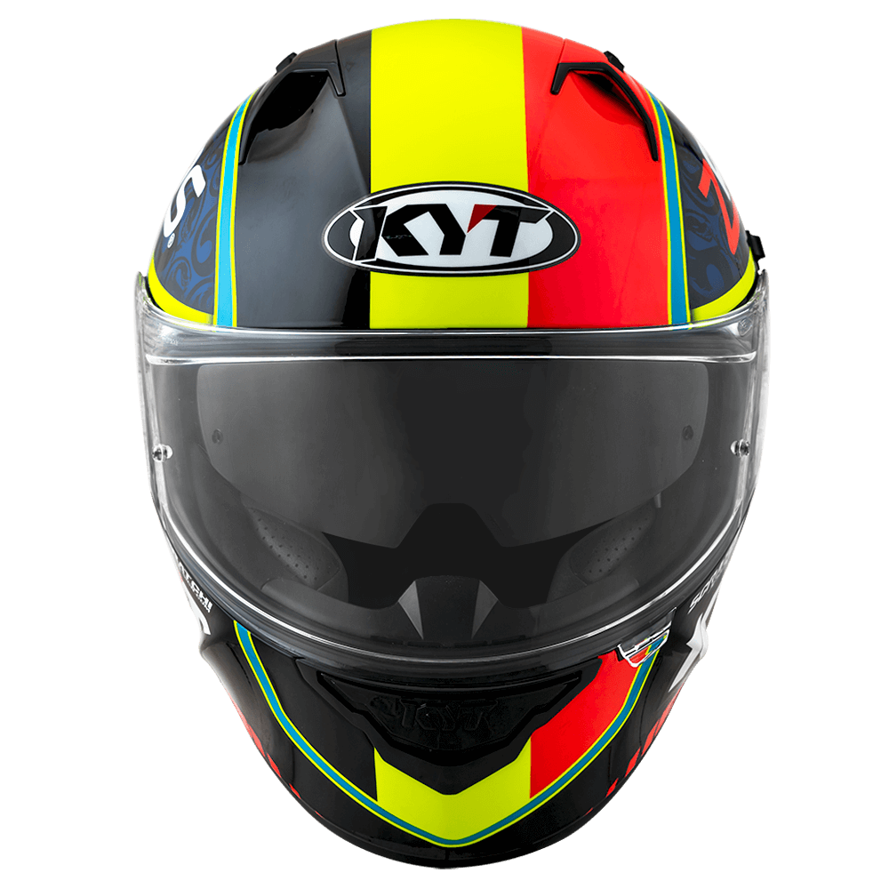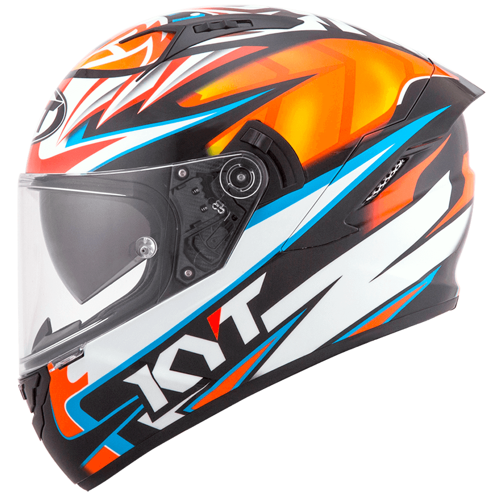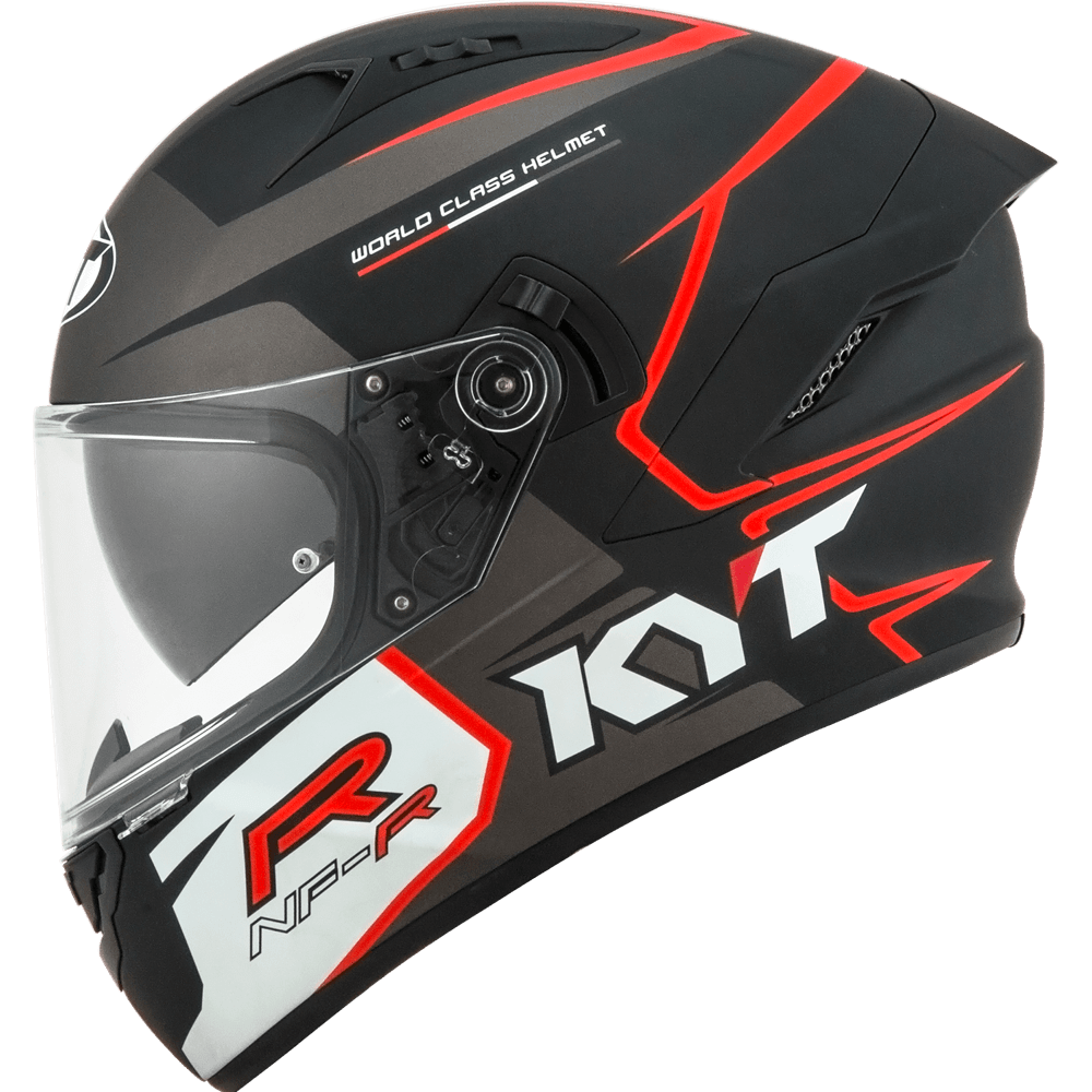 The full face helmet, spearhead of KYT for Sport Touring sector. Effective ventilation, aerodynamic spoiler and restrained weights match with a comfortable and natural fit, a D-Ring retention system and double Advance shell. Equipped with Optical Class 1 visor combined with Pinlock Max Vision and Sun Visor