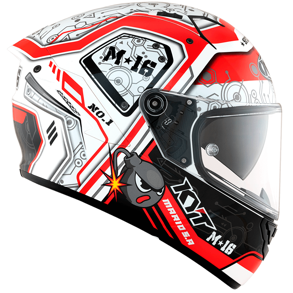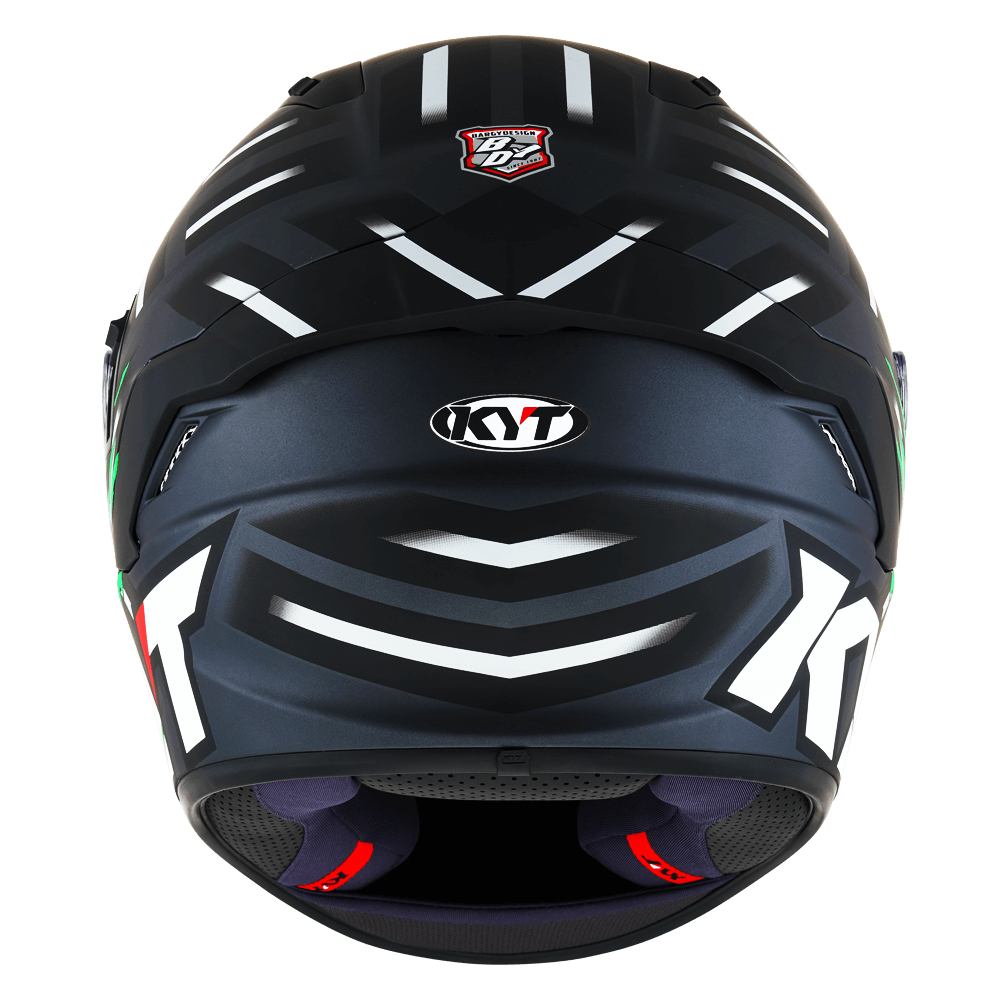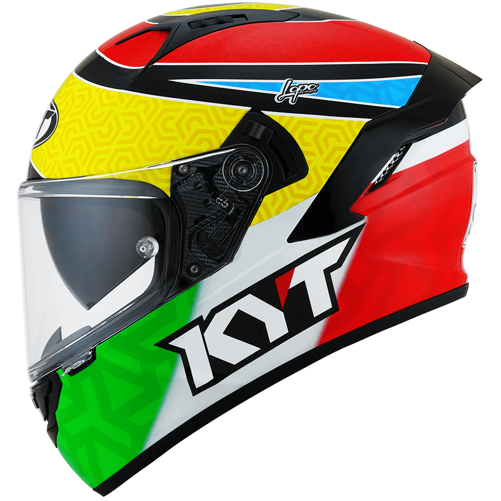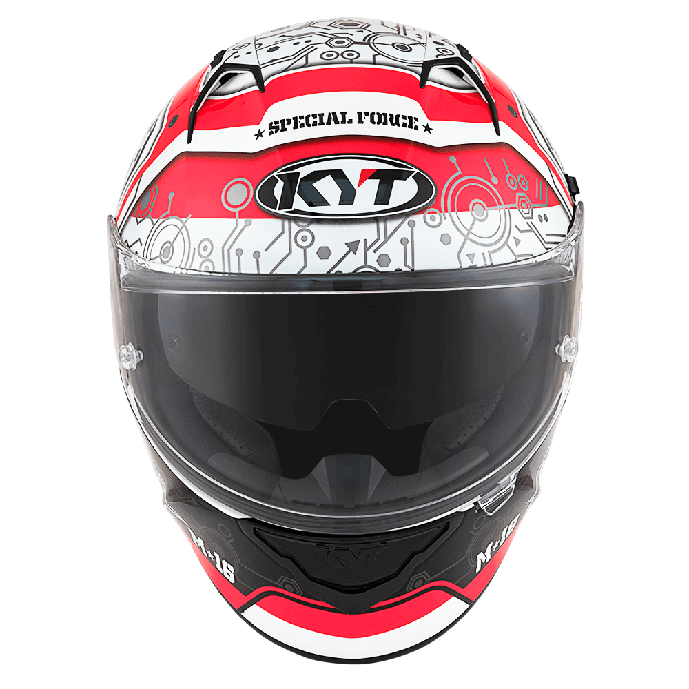 The full face helmet, spearhead of KYT for Sport Touring sector. Effective ventilation, aerodynamic spoiler and restrained weights match with a comfortable and natural fit, a D-Ring retention system and double Advance shell. Equipped with Optical Class 1 visor combined with Pinlock Max Vision and Sun Visor