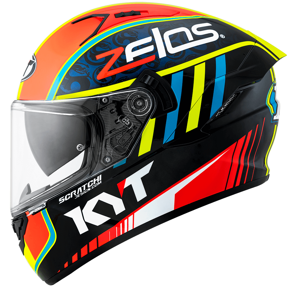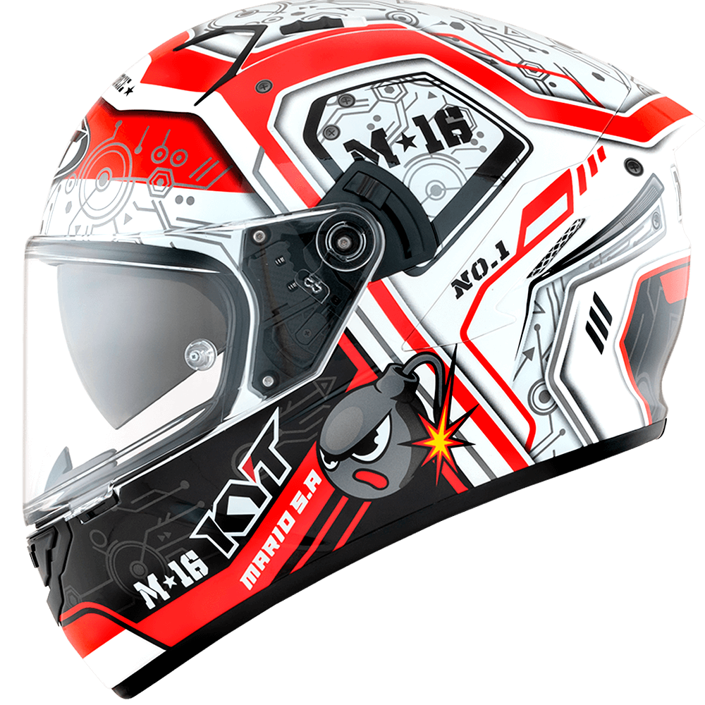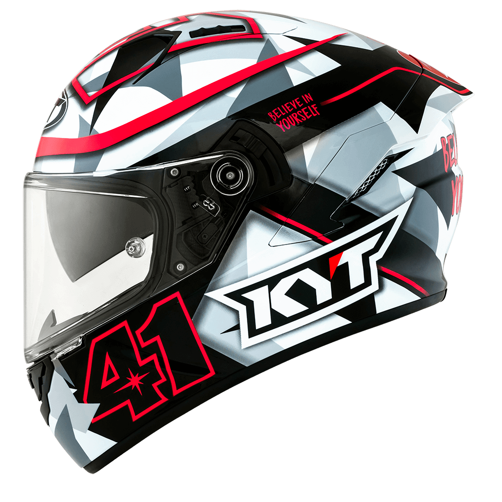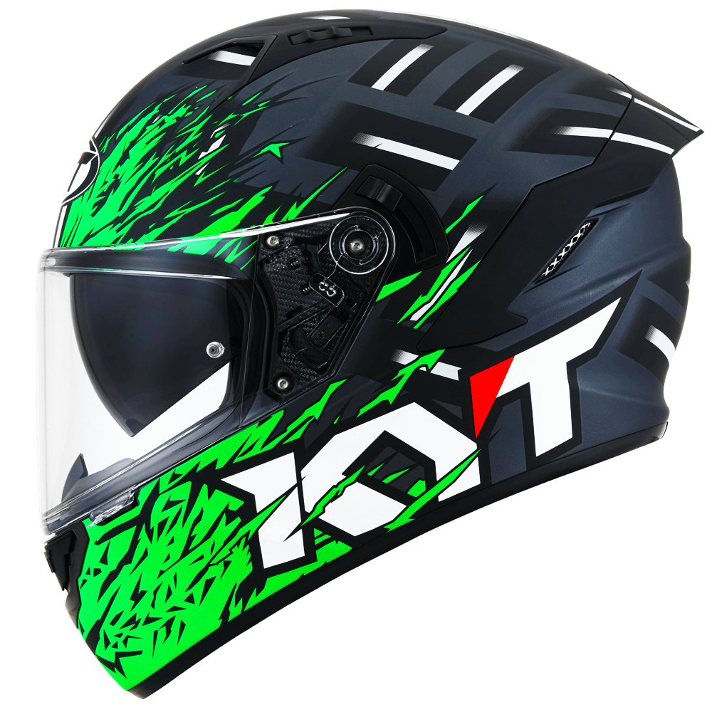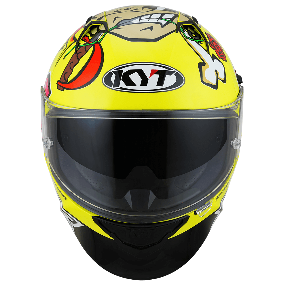 The full face helmet, spearhead of KYT for Sport Touring sector. Effective ventilation, aerodynamic spoiler and restrained weights match with a comfortable and natural fit, a D-Ring retention system and double Advance shell. Equipped with Optical Class 1 visor combined with Pinlock Max Vision and Sun Visor